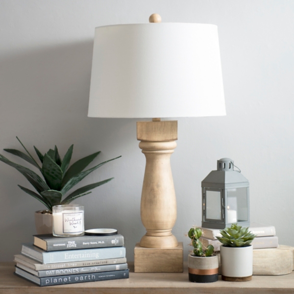 Wooden Baluster Table Lamps Rustic Farmhouse Distressed Wood Base
