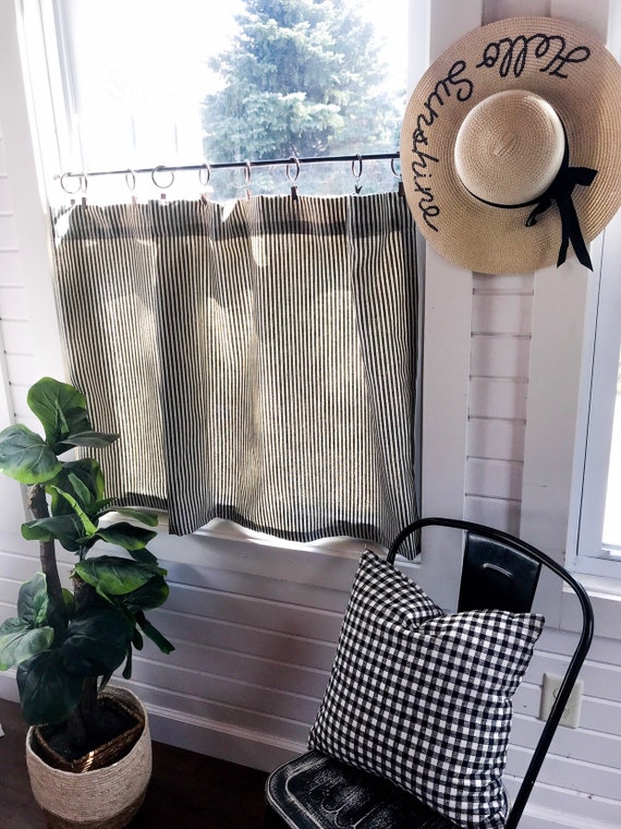 Cream Ticking Striped Cafe Curtain Farmhouse Decor Kitchen Etsy
