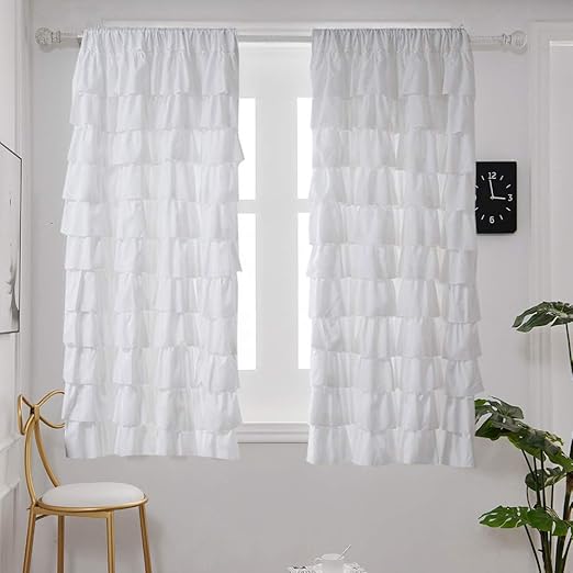 Amazon Com Yj Yanjun White Ruffle Curtains Farmhouse Decor For