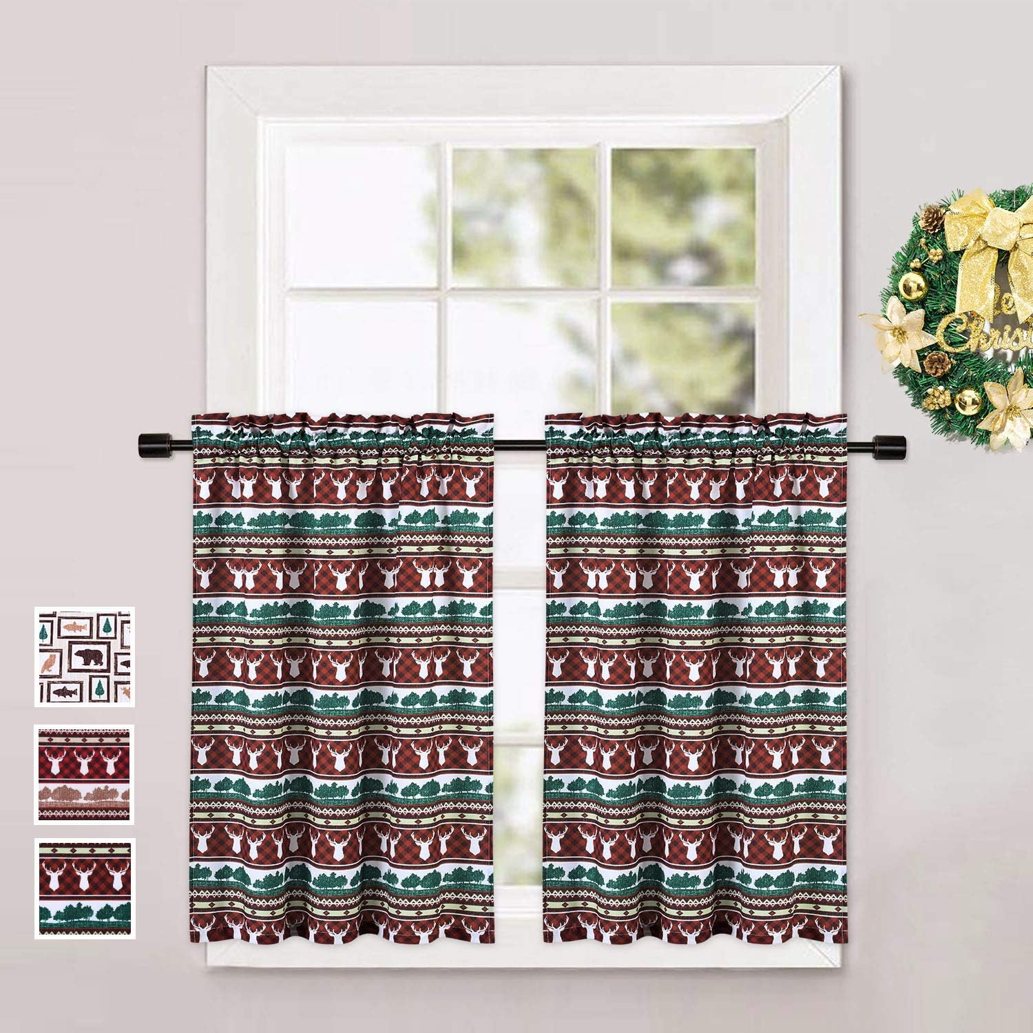 Amazon Com Caromio Christmas Curtains For Kitchen Reindeer Plaid