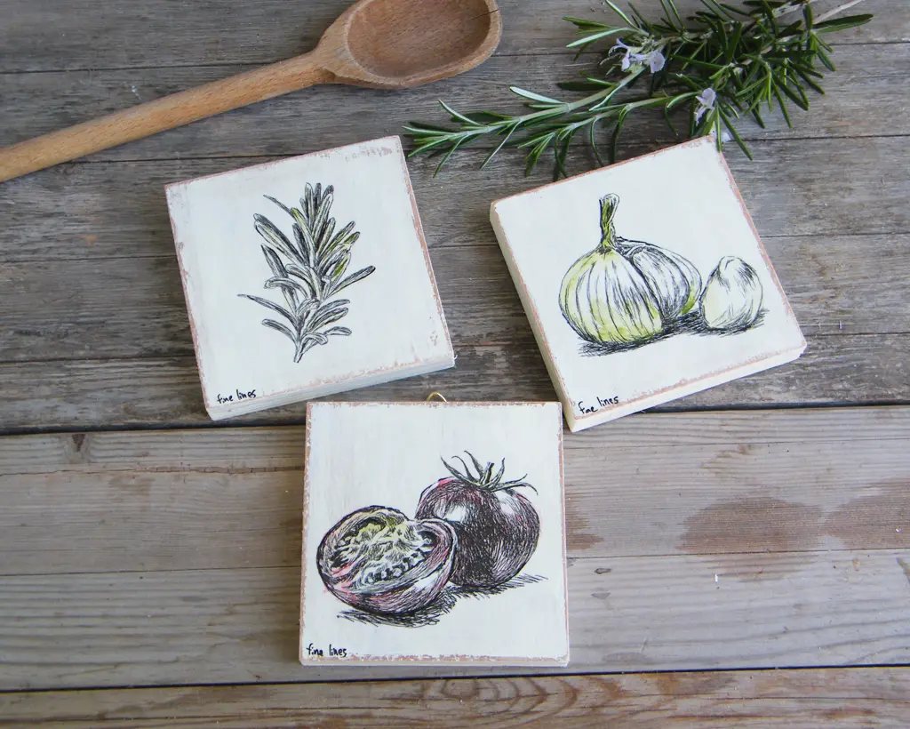 Food Art Miniature Paintings Set Of 3 Rustic Kitchen Decor