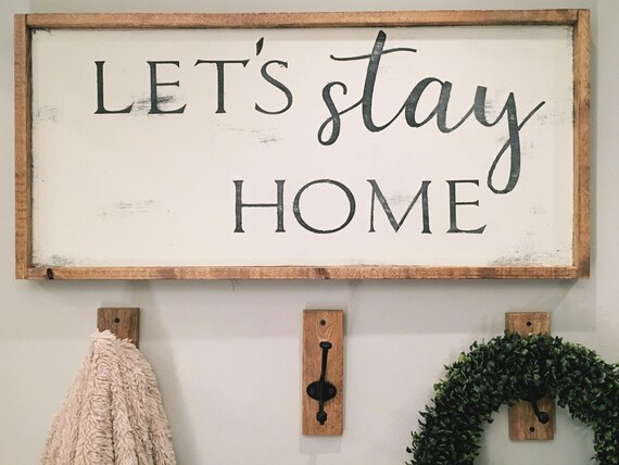 Let S Stay Home Wood Sign Rustic Wood Signs Lets Stay Home