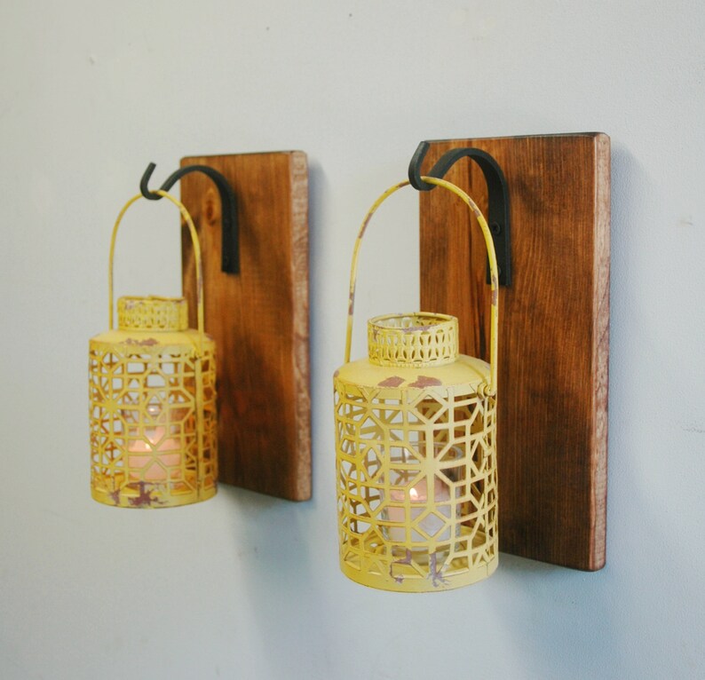 Shabby Chic Yellow Lantern Pair Farmhouse Decor Wall Decor Etsy