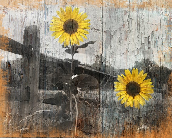 Rustic Yellow Brown Sunflower Wall Art Farmhouse Decor Country