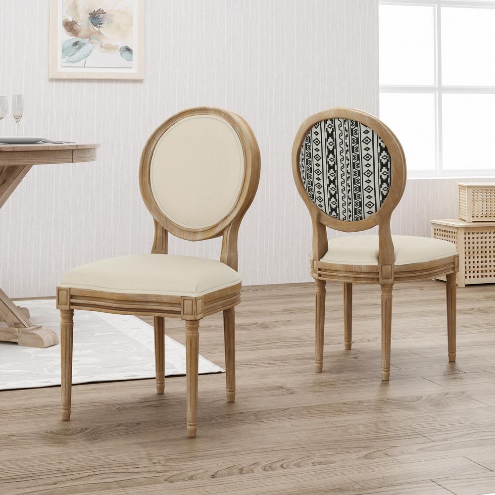 Noble House Phinnaeus Farmhouse Beige Fabric Dining Chairs With