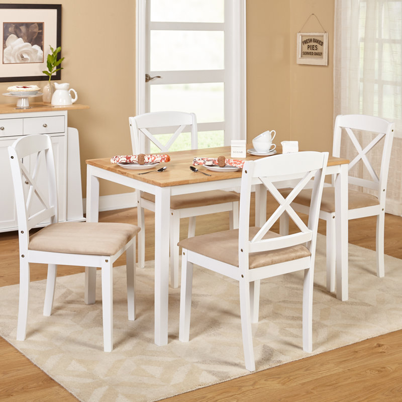 Welwick Designs 5 Piece White Solid Wood Farmhouse Dining Set