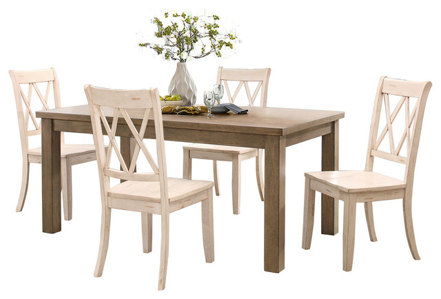 Boraam 5pc Farmhouse Dining Set In White And Natural 80369