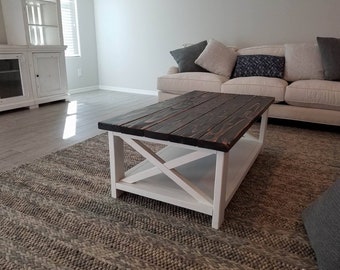 Rustic Farmhouse Coffee Table Distressed Dark Walnut Solid Wood