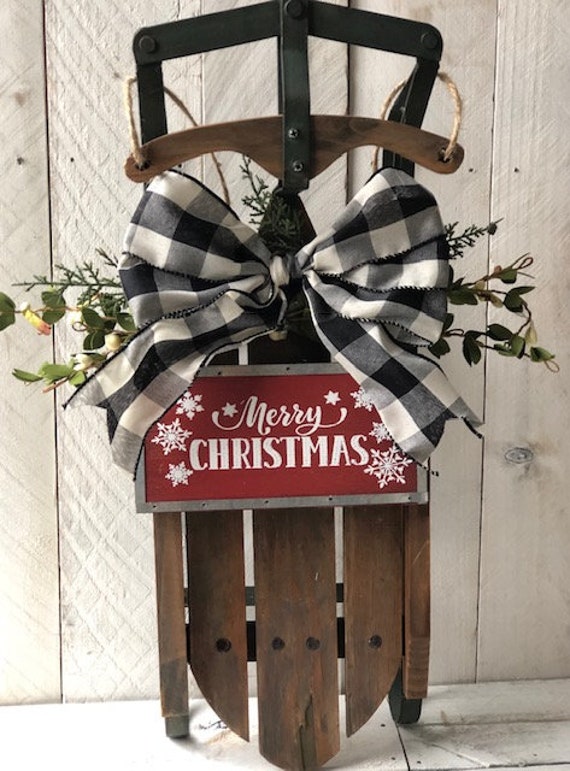 Amazon Com Let It Snow Christmas Sleigh Sled Wood Sign For Rustic Farmhouse Front Door Decor X24 Handmade