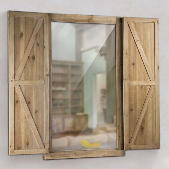 Barn Door Farmhouse Mirror Natural Wood Rustic Metal Etsy