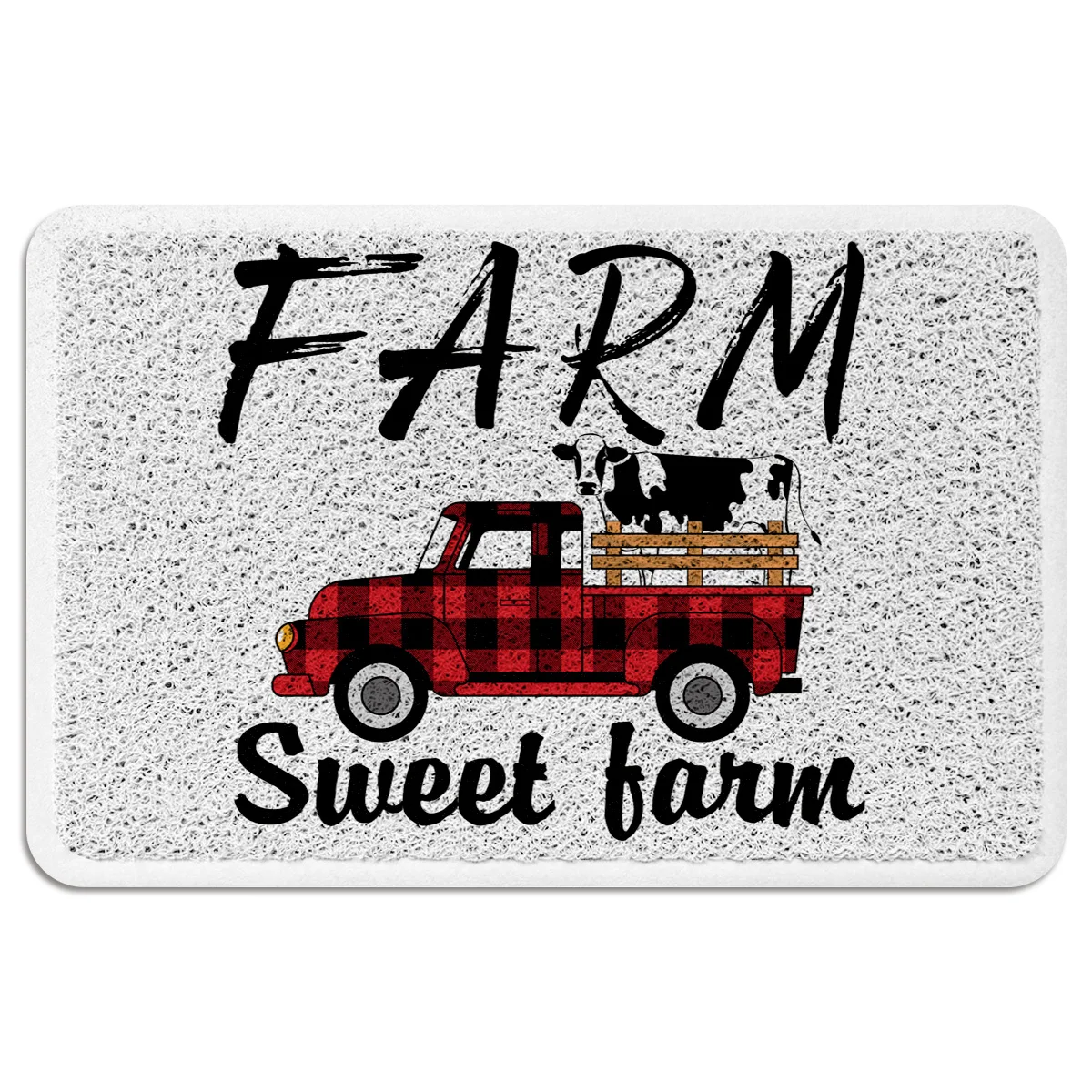 Sweet Farm Farmhouse Cow Red Truck Pvc Doormat Outdoor Wire Loop
