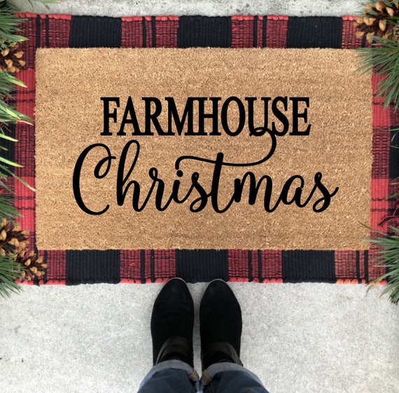 Farmhouse Christmas Doormat Farmhouse Christmas Porch Decor Etsy