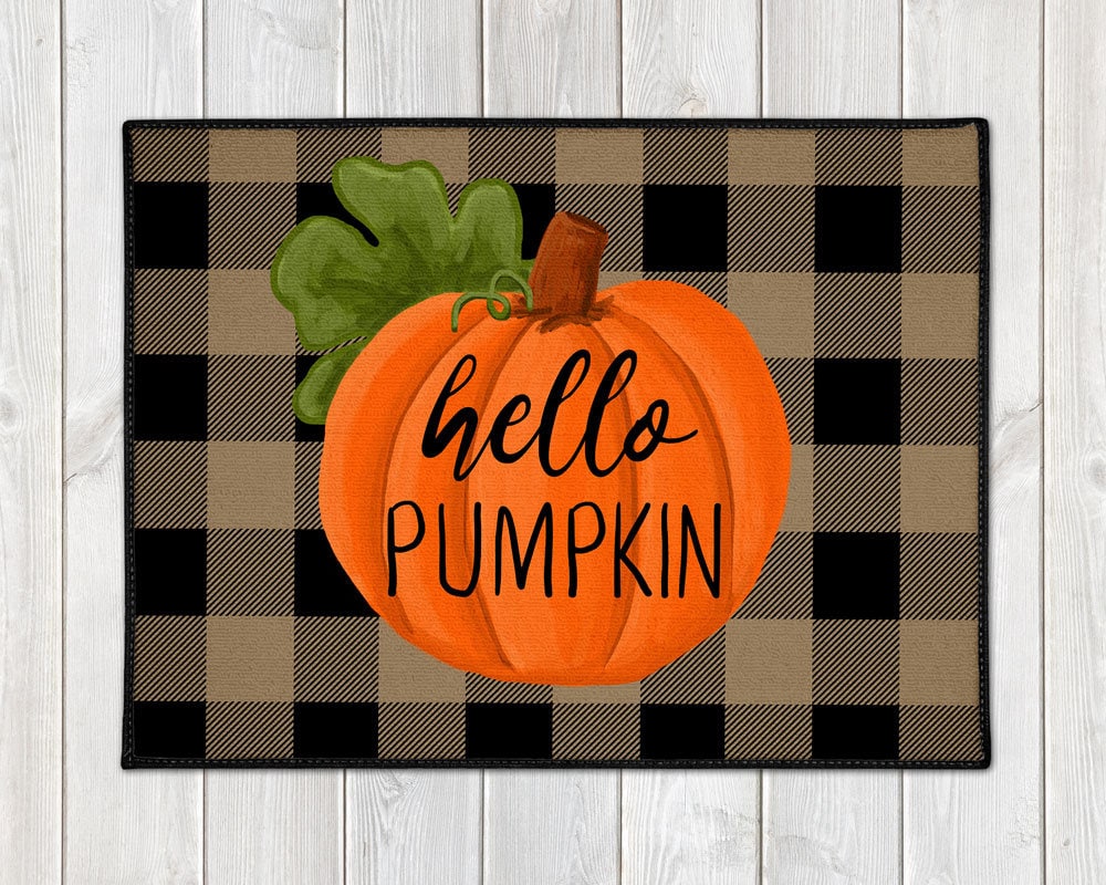 Fall Welcome Mat Buffalo Plaid Mat Hello Pumpkin Door Mat