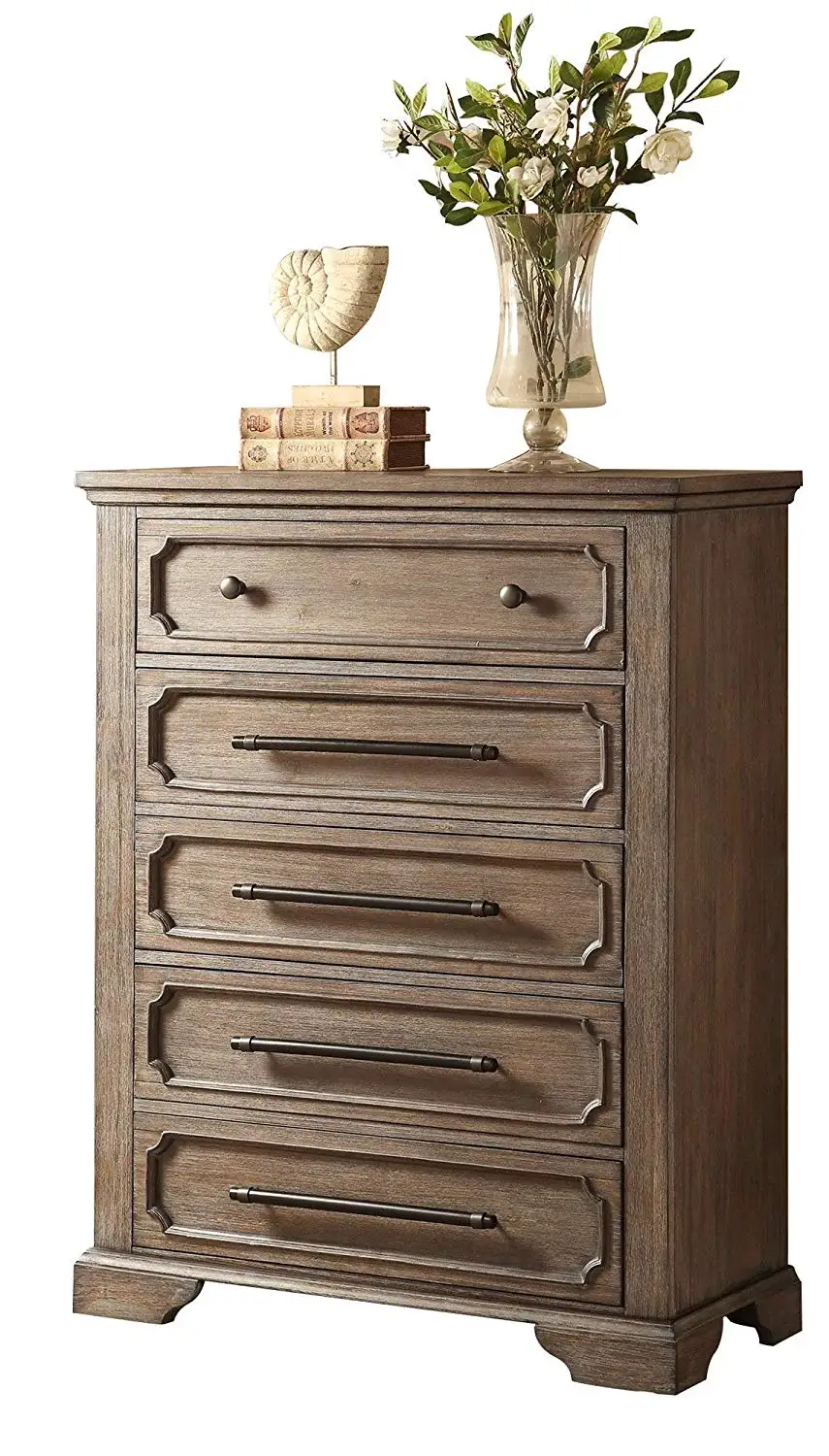 Amazon Com Thiara French Farmhouse 5pc Bedroom Set Queen Storage Bed Dresser Mirror 1 Nightstand Chest In Acacia Wood Finish Kitchen Dining