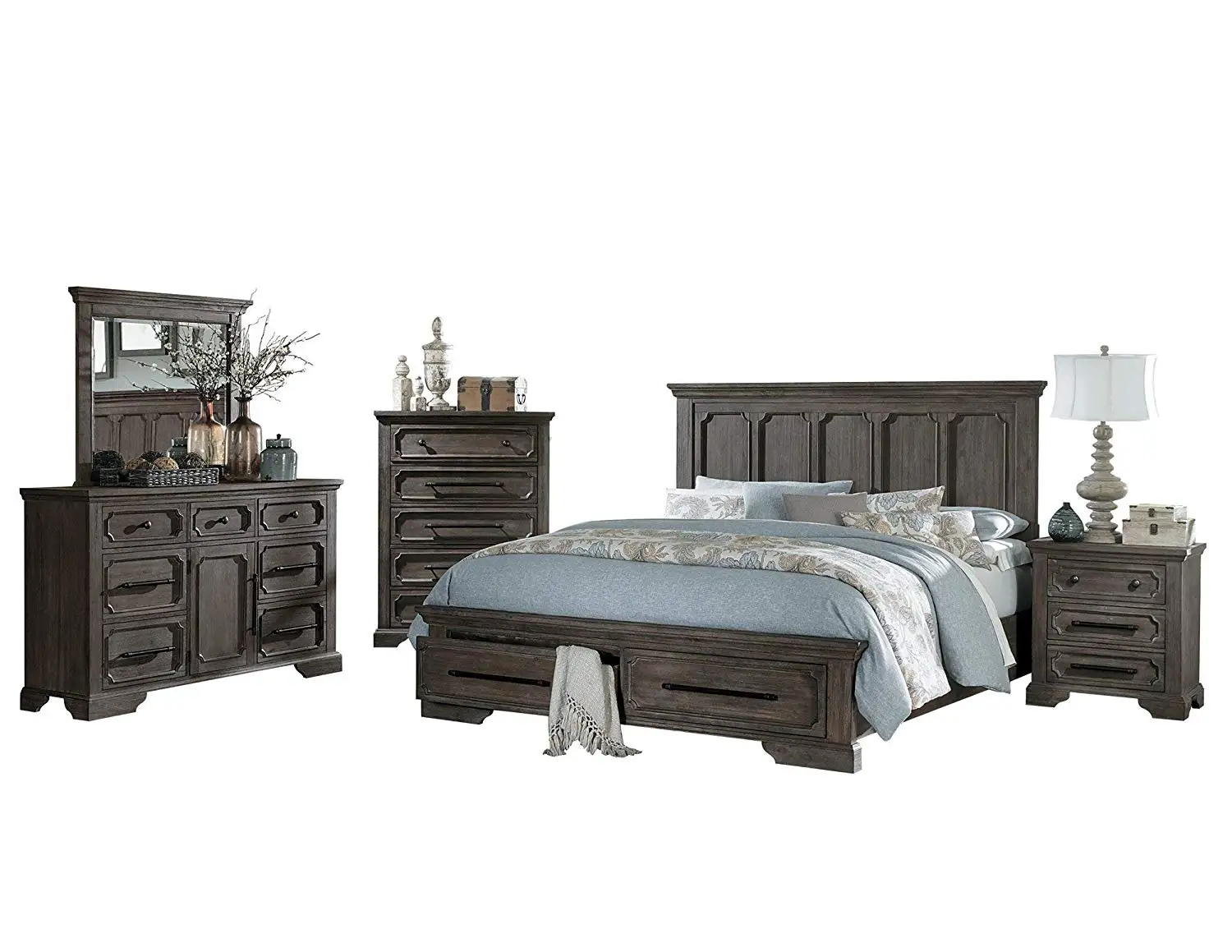 Buy Thiara French Farmhouse 4pc Bedroom Set Cal King Storage Bed Dresser Mirror 1 Nightstand In Acacia Wood Finish In Cheap Price On Alibaba Com