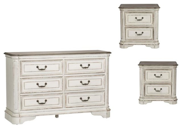 Liberty Furniture 3 Piece Rustic Farmhouse Set With Dresser And Set Of 2 Nightstand