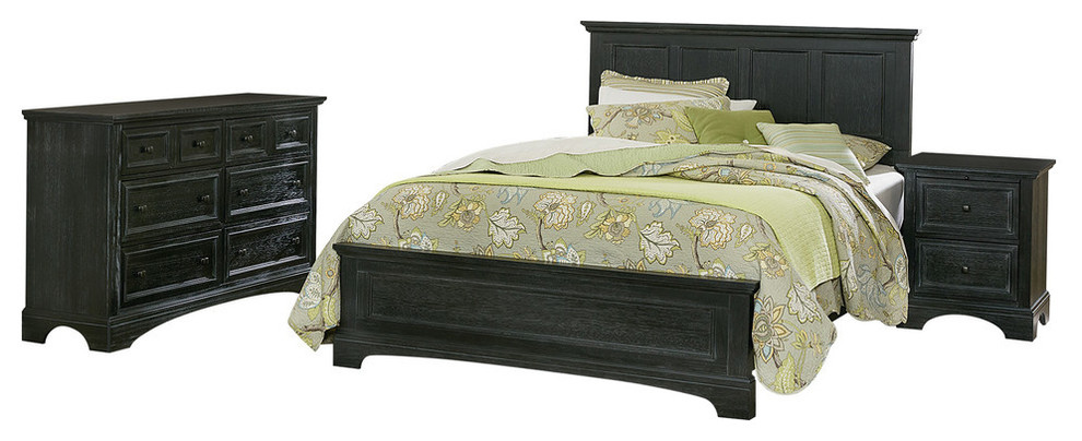 Osp Home Furnishings Farmhouse Basics King Bedroom Set With 2 Nightstands And 1 Dresser In Rustic Black 7 Pieces Bp 4200 314b The Home Depot