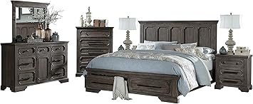 Modern Farmhouse Distressed Dusty Charcoal Panel Bedroom Set