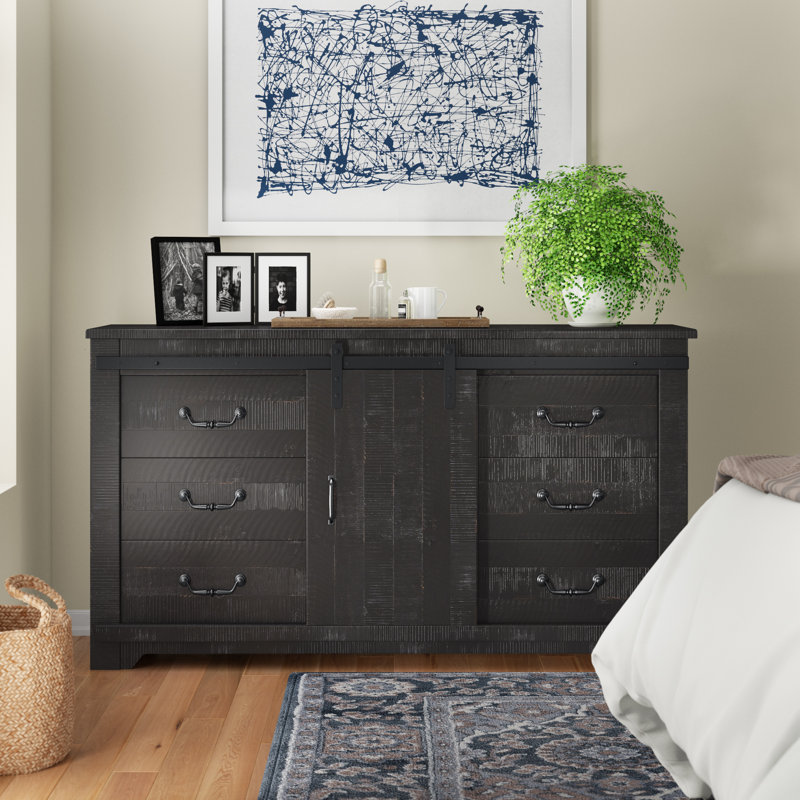 Osp Home Furnishings Farmhouse 6 Drawer Basics Rustic Black
