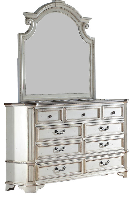 Kyle Antique White 2 Pieces Dresser And Mirror Set Farmhouse
