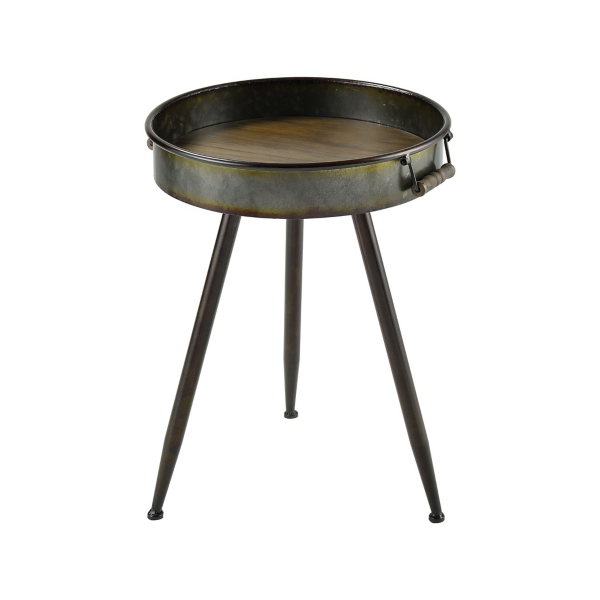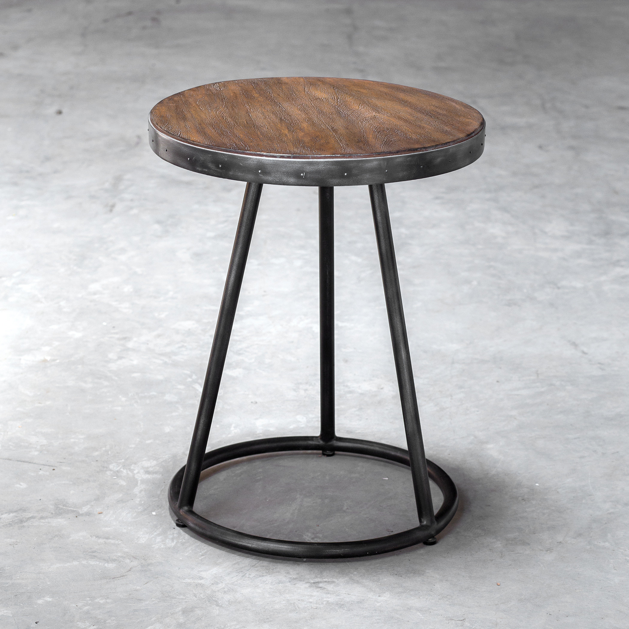 Gallien Round Metal And Rustic Wood End Table Reviews Joss Main