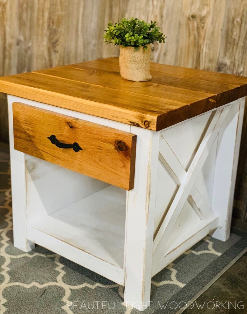 Country Farmhouse Side Table And Nightstand With Storage Drawer
