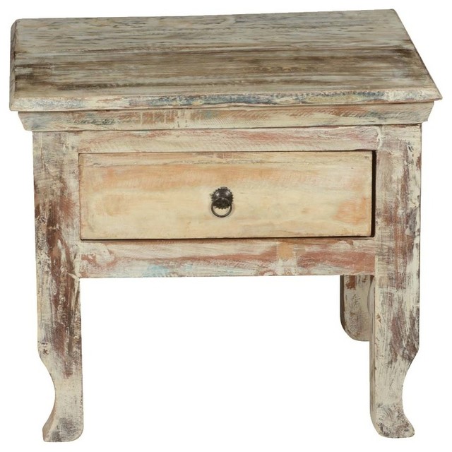 Winter Storm Reclaimed Wood Accent End Table W Drawer Farmhouse