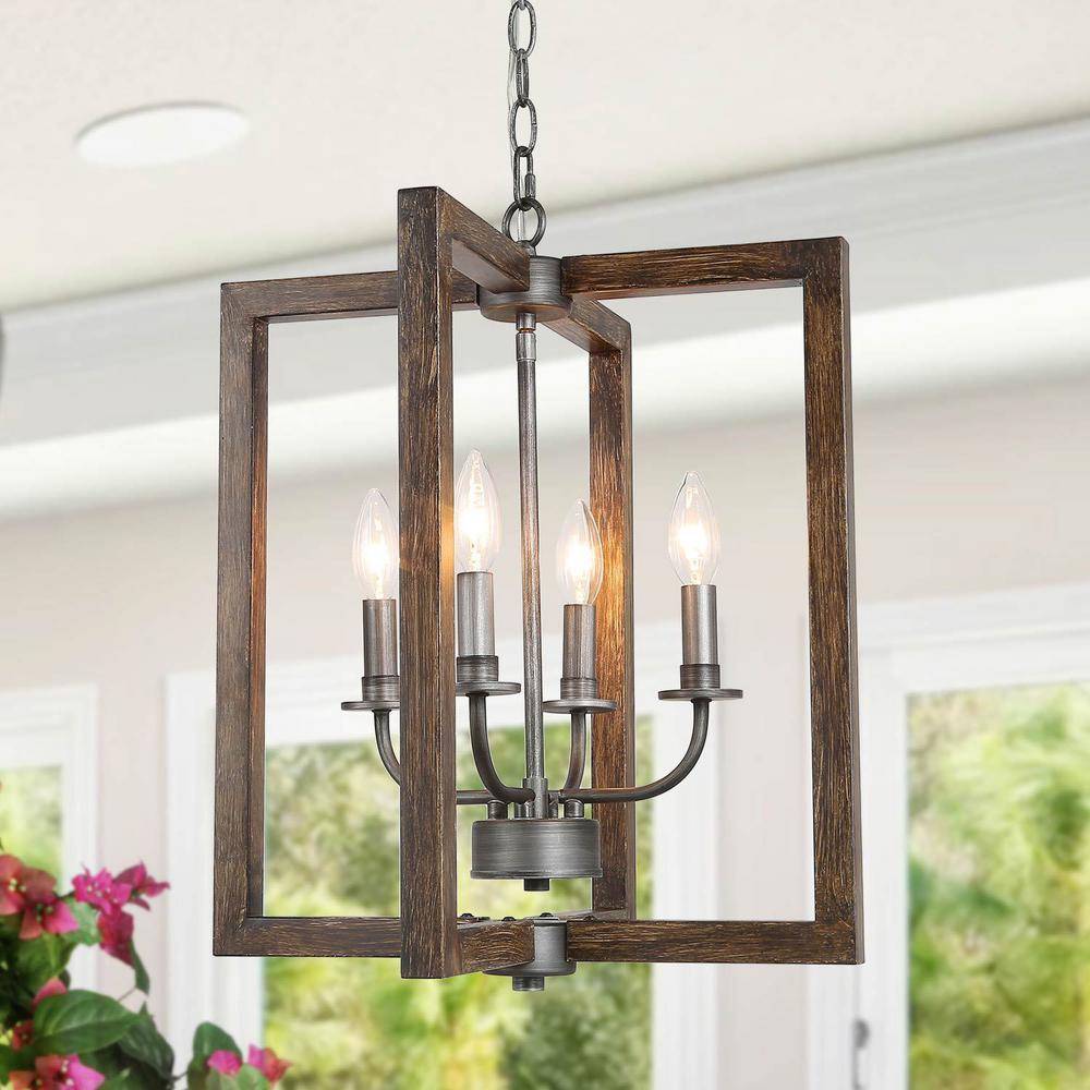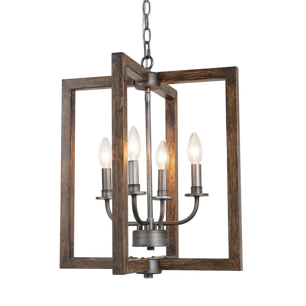 Shop Farmhouse 4 Lights Square Foyer Wood Chandelier For Kitchen