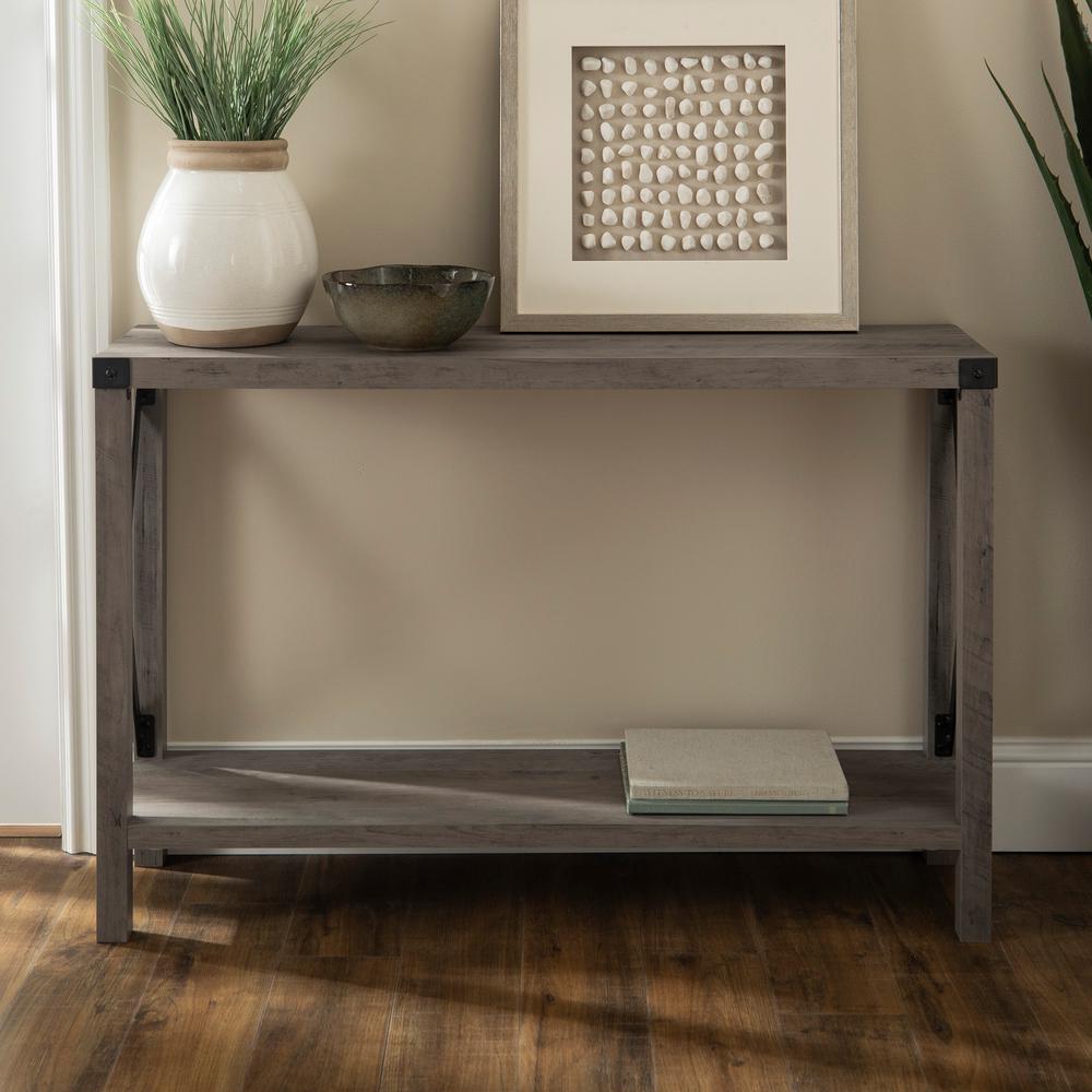 Stone Gray 46 Inch Rustic Farmhouse Entryway Table Metal X Rc
