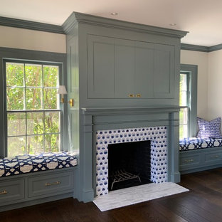 75 Beautiful Dark Wood Floor Sunroom With A Tile Fireplace