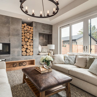 75 Beautiful Farmhouse Living Room With A Tile Fireplace Pictures Ideas August 2020 Houzz