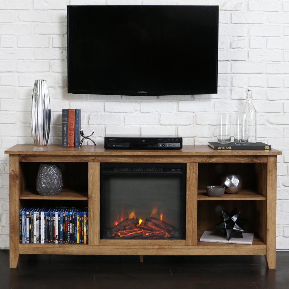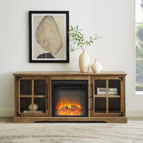 Walker Edison White Oak 58 Rustic Modern Farmhouse Fireplace Tv