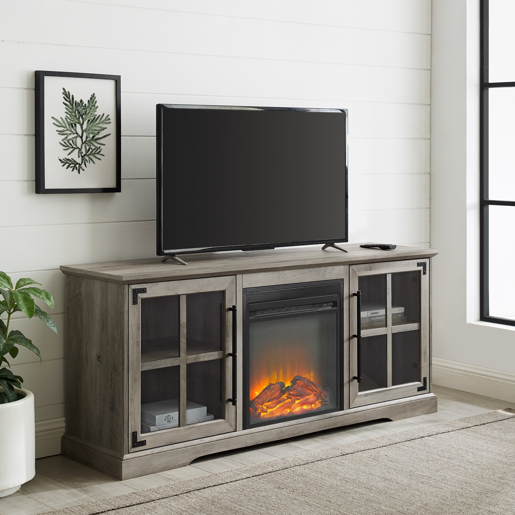 Walker Edison Farmhouse Wood Fireplace Tv Stand With Glass Doors