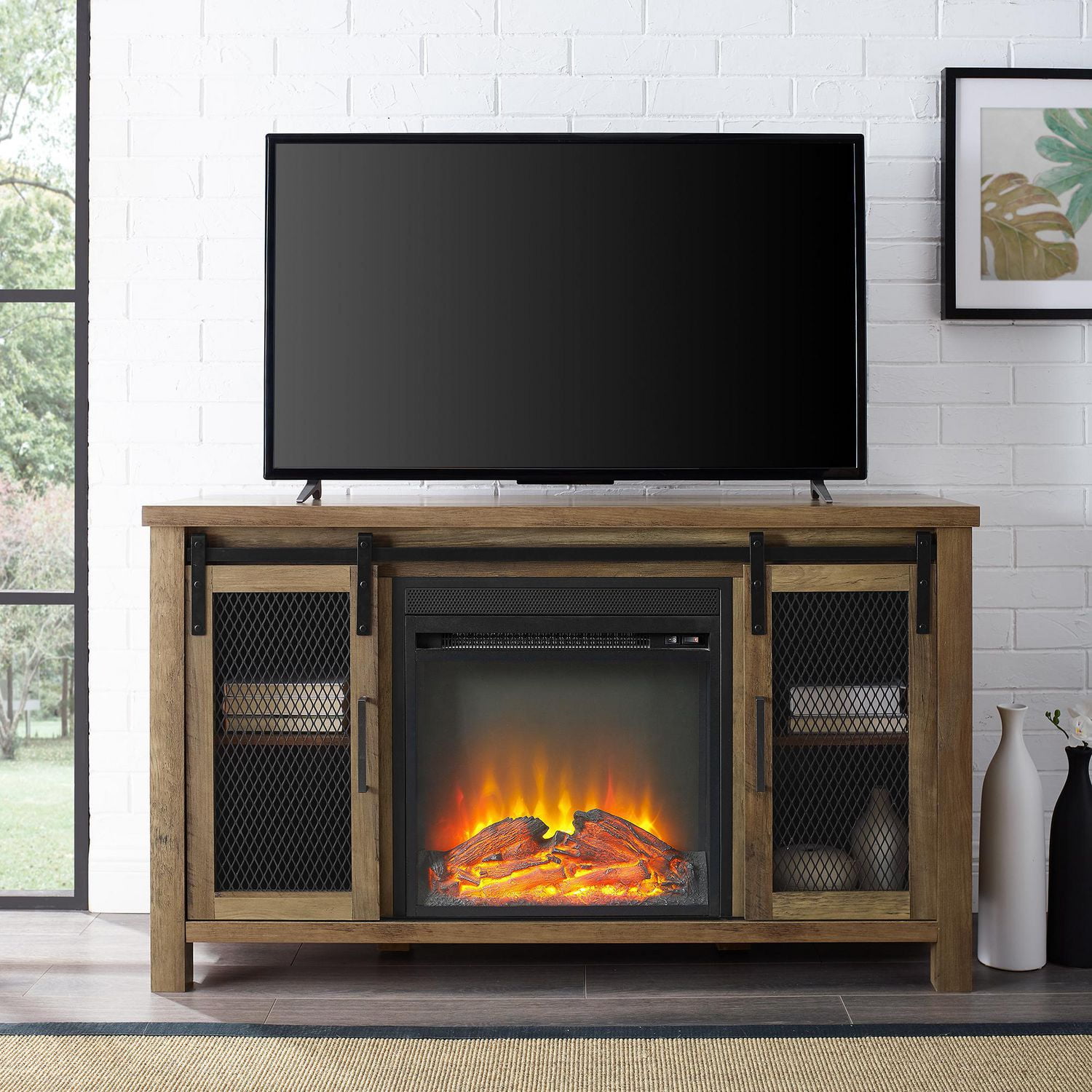 Walker Edison 58 Rustic Farmhouse Barn Door Fireplace Tv Stand