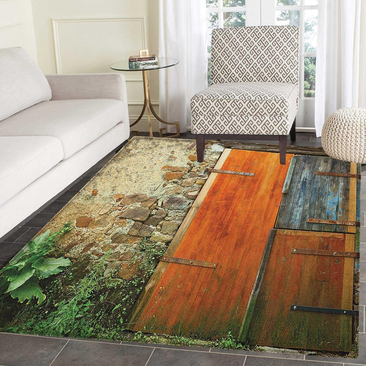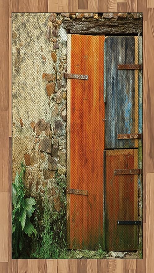 Amazon Com Shutters Non Slip Rugs Old Fashion Country House French Entrance Stone Wall Farmhouse Picture Print Door Mats For Inside Non Slip Backing 3 X4 Orange Green Kitchen Dining