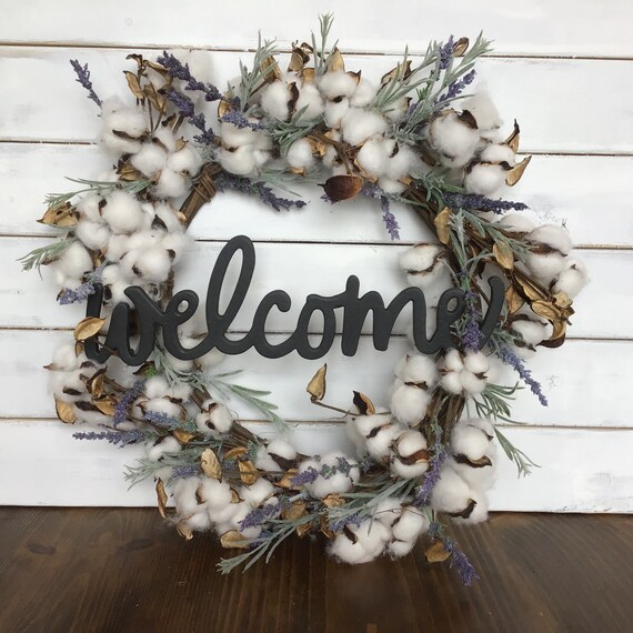 Front Door Wreath Welcome Wreath Farmhouse Cotton Wreath Etsy
