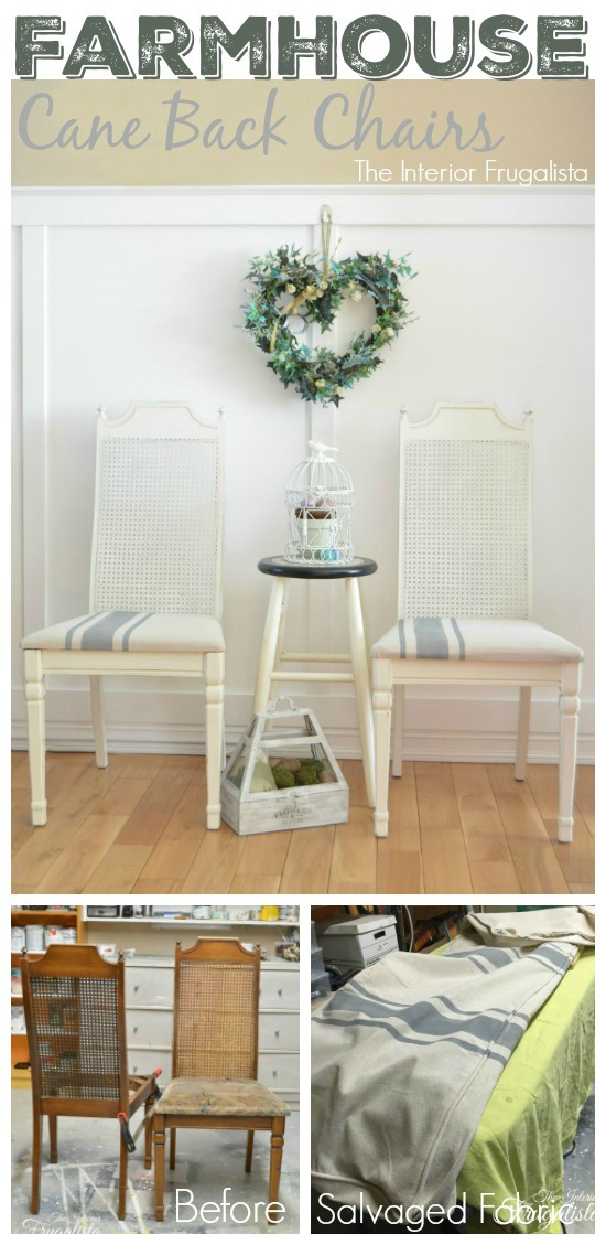 Farmhouse Cane Back Chairs With Painted Grain Sack Stripes