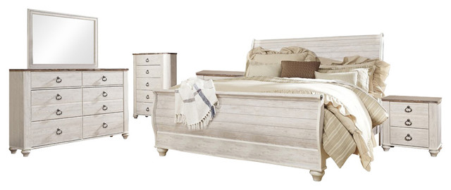 Ashley Willowton 6 Piece Sleigh Bedroom Set White Farmhouse