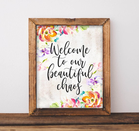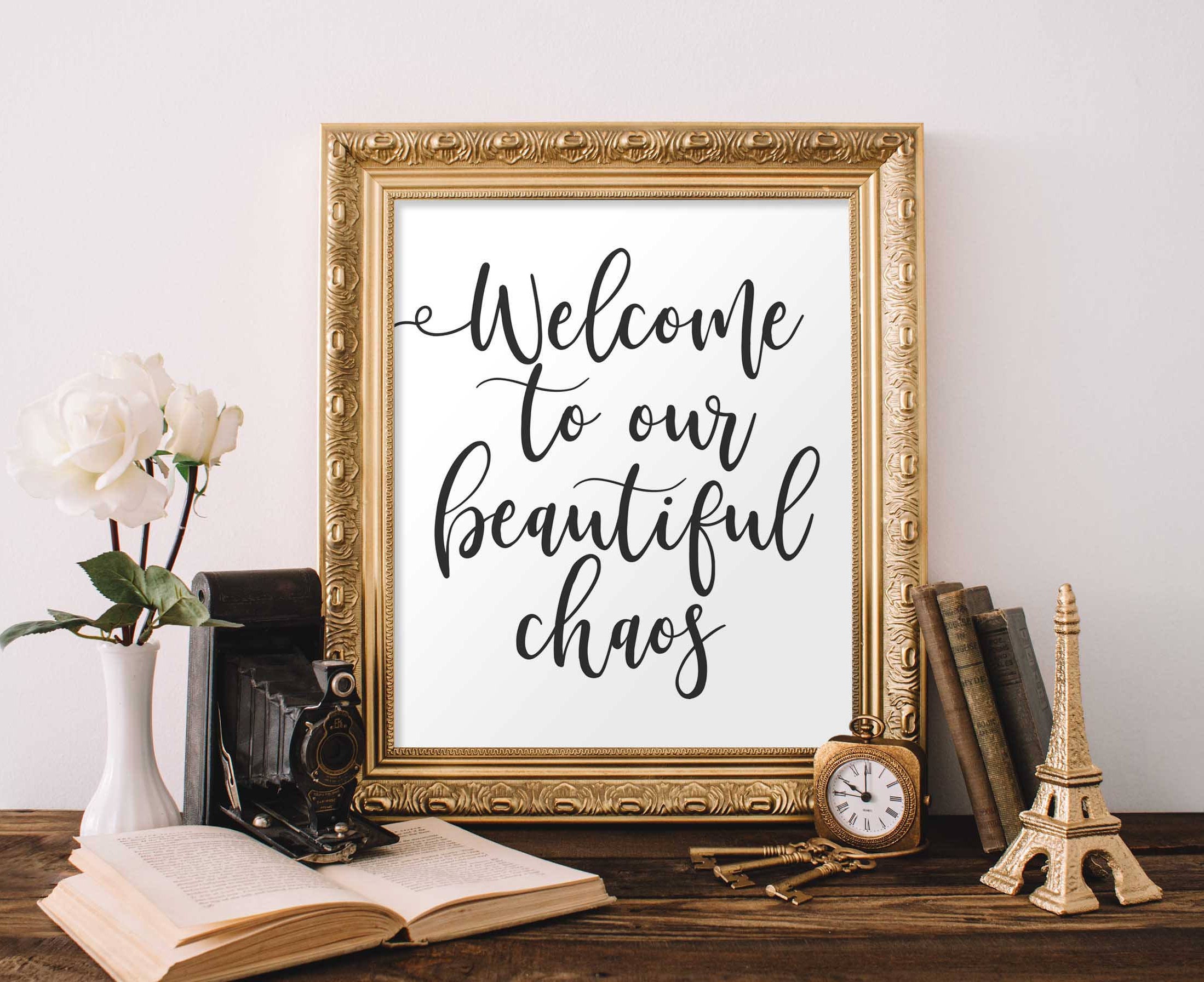 Printable Wall Art Welcome To Our Beautiful Chaos Entryway Etsy