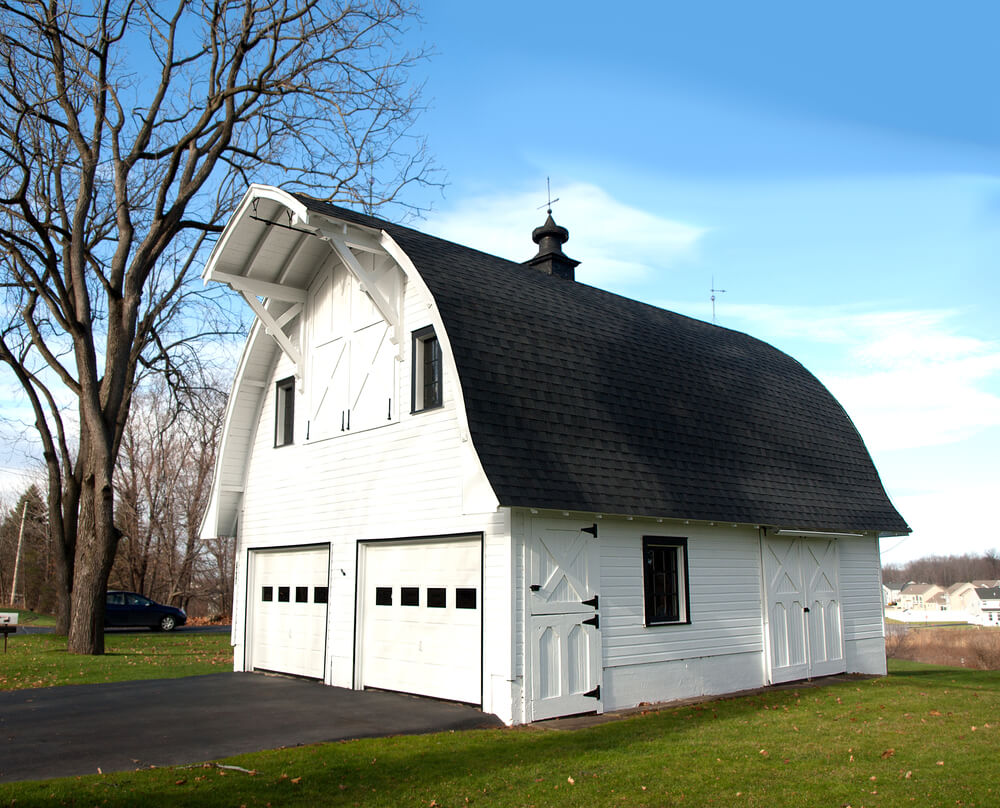 White Transitional Farmhouse Garage With Metal Roof Wood Garage