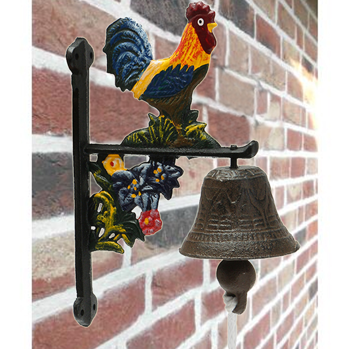 Retro Antique Cast Wrought Iron Rooster Door Wall Bell Chime Wall