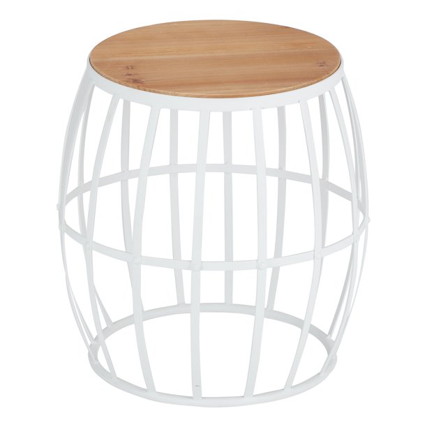 Mainstays Metal Barrel Garden Stool With Wood Top In White