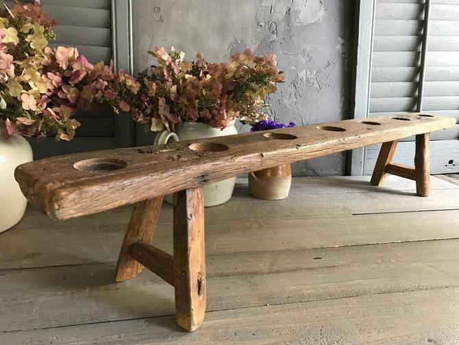 Antique Primitive Wood Bench Garden Seat Milking Stool Rustic