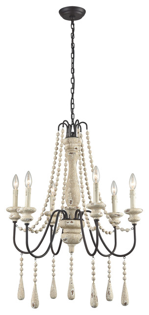 Lnc 6 Light Antique White Wood French Country Farmhouse Chandelier