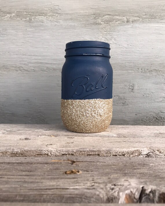 Navy Mason Jar Glitter Dipped Jar Gold Glitter Jars Etsy