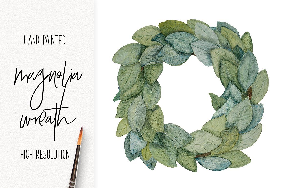 Watercolor Magnolia Wreath Watercolor Wreath Watercolor