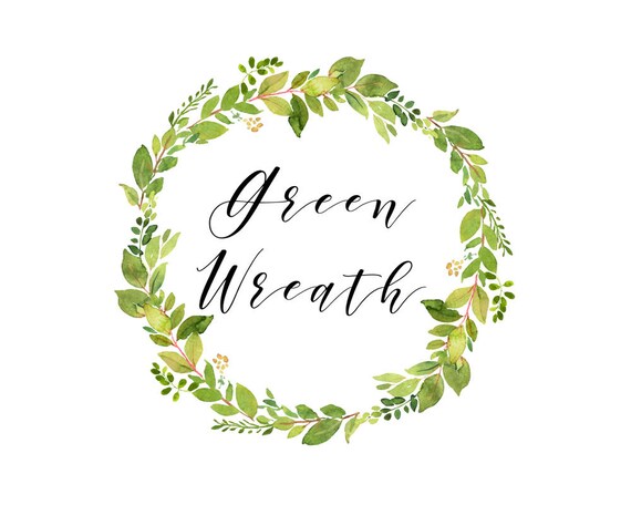 Green Leaves Wreath Watercolor Wreath Greenery Clipart Etsy