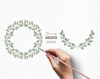 Digital Rustic Greenery Clipart Laurel Whimsical Hand Drawn Etsy