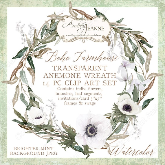 Watercolor Boho Farmhouse Anemone Floral Wreath Digital Etsy