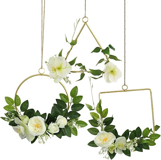 Amazon Com Rinlong Floral Hoop Wreath Set Of 3 Greenery White